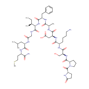 InChI=1S/C54H85N13O15S/c1-7-30(4)44(53(81)57-27-42(70)60-36(24-29(2)3)49(77)61-33(45(56)73)20-23-83-6)66-50(78)37(25-32-14-9-8-10-15-32)63-46(74)31(5)58-48(76)38(26-43(71)72)64-47(75)34(16-11-12-21-55)62-51(79)39(28-68)65-52(80)40-17-13-22-67(40)54(82)35-18-19-41(69)59-35/h8-10,14-15,29-31,33-40,44,68H,7,11-13,16-28,55H2,1-6H3,(H2,56,73)(H,57,81)(H,58,76)(H,59,69)(H,60,70)(H,61,77)(H,62,79)(H,63,74)(H,64,75)(H,65,80)(H,66,78)(H,71,72)/t30-,31-,33-,34-,35-,36-,37-,38-,39-,40-,44-/m0/s1
