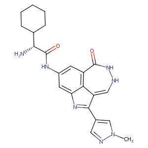 InChI=1S/C22H25N7O2/c1-29-11-13(9-25-29)20-16-10-24-28-21(30)15-7-14(8-17(27-20)18(15)16)26-22(31)19(23)12-5-3-2-4-6-12/h7-12,19,24H,2-6,23H2,1H3,(H,26,31)(H,28,30)/t19-/m1/s1