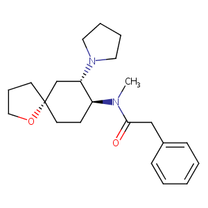 InChI=1S/C22H32N2O2/c1-23(21(25)16-18-8-3-2-4-9-18)19-10-12-22(11-7-15-26-22)17-20(19)24-13-5-6-14-24/h2-4,8-9,19-20H,5-7,10-17H2,1H3/t19-,20-,22-/m0/s1