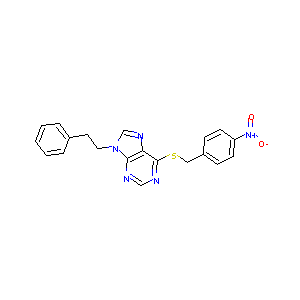 C1=CC=C(C=C1)CCN2C=NC3=C2N=CN=C3SCC4=CC=C(C=C4)[N+](=O)<br />[O-]