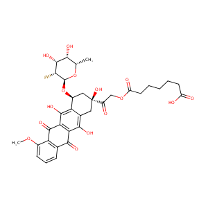 CC1C(C(C(C(O1)OC2CC(CC3=C(C4=C(C(=C23)O)C(=O)C5=C(C4=O)<br />C=CC=C5OC)O)(C(=O)COC(=O)CCCCCC(=O)O)O)F)O)O