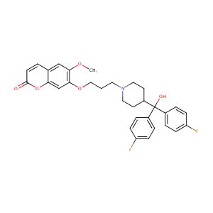 c12oc(=O)ccc2cc(c(c1)OCCCN1CCC(C(c2ccc(cc2)F)(c2ccc(cc2<br />)F)O)CC1)OC