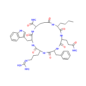 CCCCC1C(=O)NC(C(=O)NC(C(=O)NC(C(=O)NC(C(=O)NC(CCC(=O)N1<br />)C(=O)N)CC2=CNC3=CC=CC=C32)CCCN=C(N)N)CC4=CC=CC=C4)CCC(<br />=O)N