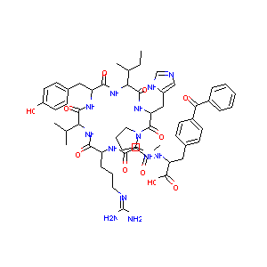 CCC(C)C(C(=O)NC(CC1=CN=CN1)C(=O)N2CCCC2C(=O)NC(CC3=CC=C<br />(C=C3)C(=O)C4=CC=CC=C4)C(=O)O)NC(=O)C(CC5=CC=C(C=C5)O)N<br />C(=O)C(C(C)C)NC(=O)C(CCCN=C(N)N)NC(=O)CNC