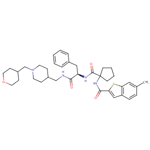 InChI=1S/C37H48N4O4S/c1-26-9-10-30-23-33(46-32(30)21-26)35(43)40-37(15-5-6-16-37)36(44)39-31(22-27-7-3-2-4-8-27)34(42)38-24-28-11-17-41(18-12-28)25-29-13-19-45-20-14-29/h2-4,7-10,21,23,28-29,31H,5-6,11-20,22,24-25H2,1H3,(H,38,42)(H,39,44)(H,40,43)/t31-/m1/s1