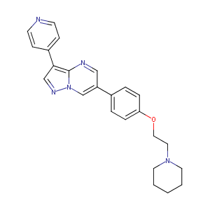 InChI=1S/C24H25N5O/c1-2-12-28(13-3-1)14-15-30-22-6-4-19(5-7-22)21-16-26-24-23(17-27-29(24)18-21)20-8-10-25-11-9-20/h4-11,16-18H,1-3,12-15H2
