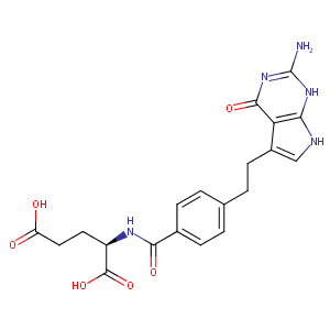 Alimta; LYA; LY 231514; LY231514; Alimta (TN); LY 231,514; LY-2315; LY-231514; Pemetrexed (INN); Pemetrexed [INN:BAN]; LY-231,514; N-(4-(2-(2-Amino-3,4-dihydro-4-oxo-7H-pyrrolo(2,3-d)pyrimdin-5-yl)ethyl)benzoyl)glutamic acid; N-{4-[2-(2-amino-4-oxo-4,7-dihydro-1h-pyrrolo[2,3-d]pyrimidin-5-yl)ethyl]benzoyl}-d-glutamic acid; (2R)-2-[[4-[2-(2-amino-4-oxo-1,7-dihydropyrrolo[2,3-d]pyrimidin-5-yl)ethyl]benzoyl]amino]pentanedioic acid; (2S)-2-[[4-[2-(2-amino-4-oxo-1,7-dihydropyrrolo[2,3-d]pyrimidin-5-yl)ethyl]benzoyl]amino]pentanedioic acid; 2-[[4-[2-(2-amino-4-oxo-1,7-dihydropyrrolo[2,3-d]pyrimidin-5-yl)ethyl]benzoyl]amino]pentanedioic acid; 2-{4-[2-(2-AMINO-4-OXO-4,7-DIHYDRO-3H-PYRROLO[2,3-D]PYRIMIDIN-5-YL)-ETHYL]-BENZOYLAMINO}-PENTANEDIOIC ACID