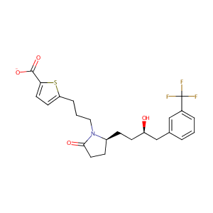 InChI=1S/C23H26F3NO4S/c24-23(25,26)16-4-1-3-15(13-16)14-18(28)8-6-17-7-11-21(29)27(17)12-2-5-19-9-10-20(32-19)22(30)31/h1,3-4,9-10,13,17-18,28H,2,5-8,11-12,14H2,(H,30,31)/p-1/t17-,18+/m0/s1