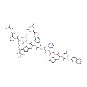 InChI=1S/C82H103ClN18O16/c1-45(2)35-60(72(107)92-59(16-9-10-33-87-46(3)4)80(115)101-34-12-17-68(101)79(114)88-47(5)70(84)105)93-74(109)63(38-51-23-30-58(31-24-51)91-81(85)116)95-76(111)64(39-50-21-28-57(29-22-50)90-71(106)66-42-69(104)100-82(117)99-66)97-78(113)67(44-102)98-77(112)65(41-53-13-11-32-86-43-53)96-75(110)62(37-49-19-26-56(83)27-20-49)94-73(108)61(89-48(6)103)40-52-18-25-54-14-7-8-15-55(54)36-52/h7-8,11,13-15,18-32,36,43,45-47,59-68,87,102H,9-10,12,16-17,33-35,37-42,44H2,1-6H3,(H2,84,105)(H,88,114)(H,89,103)(H,90,106)(H,92,107)(H,93,109)(H,94,108)(H,95,111)(H,96,110)(H,97,113)(H,98,112)(H3,85,91,116)(H2,99,100,104,117)/t47-,59+,60+,61-,62-,63-,64+,65-,66+,67+,68+/m1/s1