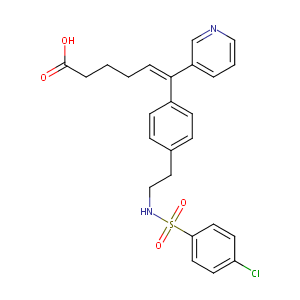 S(=O)(=O)(c1ccc(cc1)Cl)NCCc1ccc(/C(=C\CCCC(=O)O)/c2cncc<br />c2)cc1